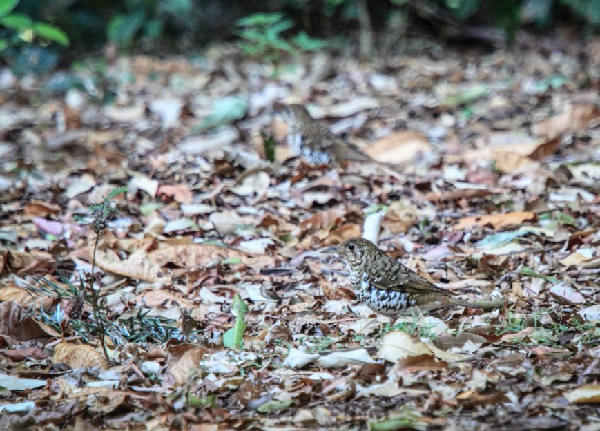 Thrush, very hard to spot unless they move. Amazing camouflage.
