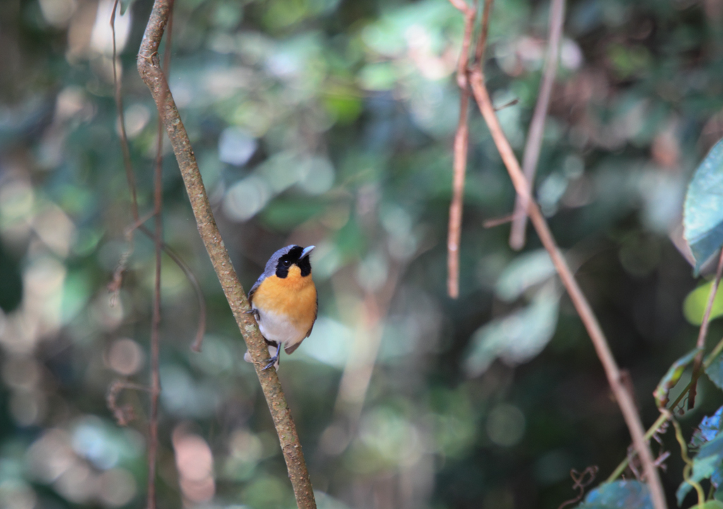 I think this is a Spectacled Monarch, they are so vibrant in colour, very small.