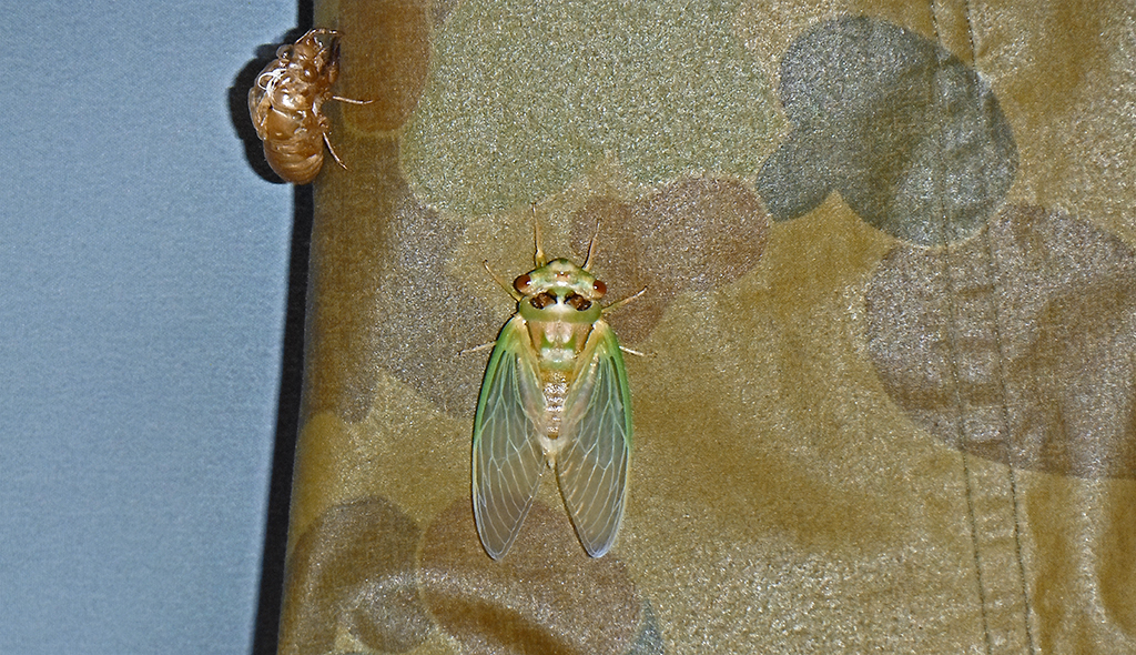 Well I got up this morning and went to loo and it needed emptying, so nice job for Don before breakfast. 😦 Had breakfast after I did my Tai Chi as I don’t walk on a Sunday. Had a early morning swim. Then I noticed a cicada on Dons coat, they have been leaving their shells everywhere but this one was in metamorphosis. So we set up our cameras and sat for one and a half hours taking shots of changes as they happened, it was very interesting and amazing. Then in the blink of an eye looked up and its gone. Had another swim then got ready to go down to the rocks at the beginning of the hill. Beautiful spot, be great camping there. Another option. The young couple that stayed last night gave us a toot as they left. After they’d gone I had a dip, so nice. Stand in the sun and dry off. Had wraps for lunch, downloaded photos. Flies are really bad today. Brothers are back, going up to the shed at Zo and Eds doing garlic. Going to the platypus again tonight at 5 pm. Didn’t see the platypus but did get shots of the kingfisher. Beautiful full moon and reflection on river. Got a fire tonight, Don is enjoying a port out there so I’m finishing the days diary and to bed I go.
