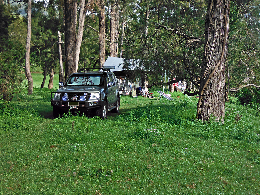 Had breakfast and did my walk, Tai Chi and stretching. Swim was a bit chilly until you are under. Had several swims again today was warm. Got all that we could packed and the rains came so thankfully we did. We saw the goanna that Harvey told us about, it had a turtle in its mouth and took it up the tree right outside our camp. Got lots of photos. Some new people have dropped in for the night, they use to visit here 20 years ago. Don tried a bit of fishing, no luck, a man and his kid were fishing at our water hole and got a eel. Tea all finished early due to weather. Went and said cheerio to the brothers, David, Bruce the artist and he told me of the story of my painting, and there’s Duck, they are nice blokes, they’re packing garlic in the sheds for Zoe and Ed. Cooled down again thats one good thing when it rains early evening, get a good sleep as not hot. Its time to move on now, be good to get home for a rest.