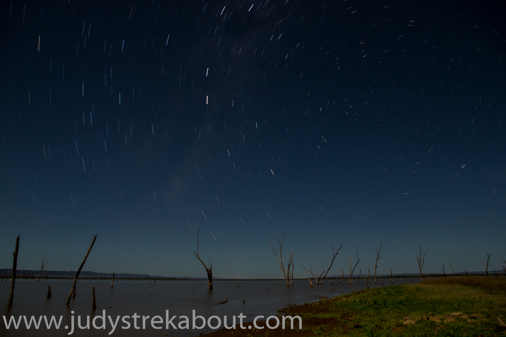 Arrived late last evening and got set up, it was a lot further than we were led to believe. There is water in the lake so that’s awesome. We have the place to ourselves. This is a N.P. and there are no facilities and no internet coverage, this is bush camping so one must be very well stocked with the essentials. It’s great to be off the grid.Had tea and got to bed. I awoke to a lovely sunny day. 🙂 We did a drive around the park took some photos and just relaxed. Lots of bird life, mainly water birds. Some Kangaroo’s and cows. Did some star trails for fun as we do.