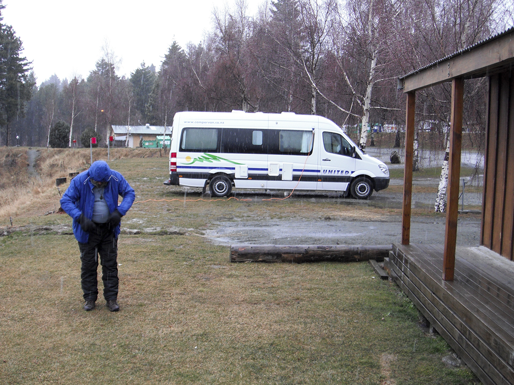 Tekapo Caravan Park on the shores of Lake Tekapo. Bitterly cold day, snow is in the air, we spent 2 nights on powered site, needed the heater, woke in the morning and it was snowing, just beautiful. Lots of sites here and the hot pools are in the next complex, I noticed that the prices have gone up,but that’s life.