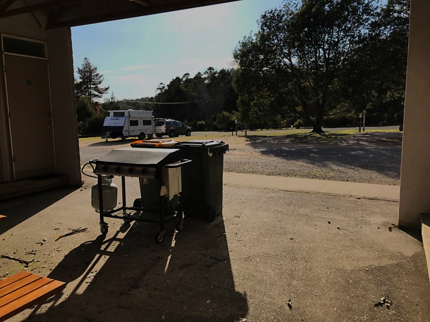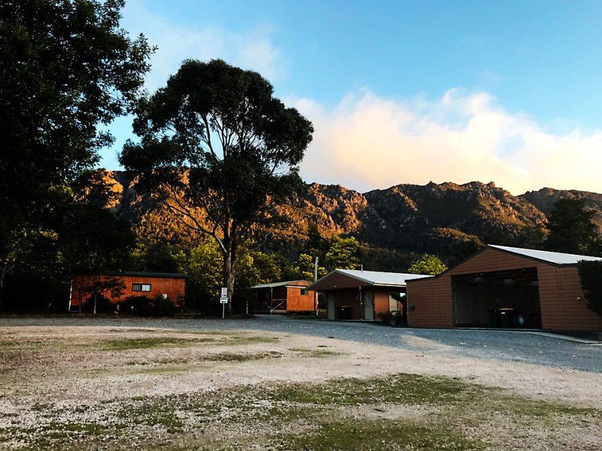 Cabins up the back, toilets and showers in the middle and backpackers cabins and bbq area in the end.