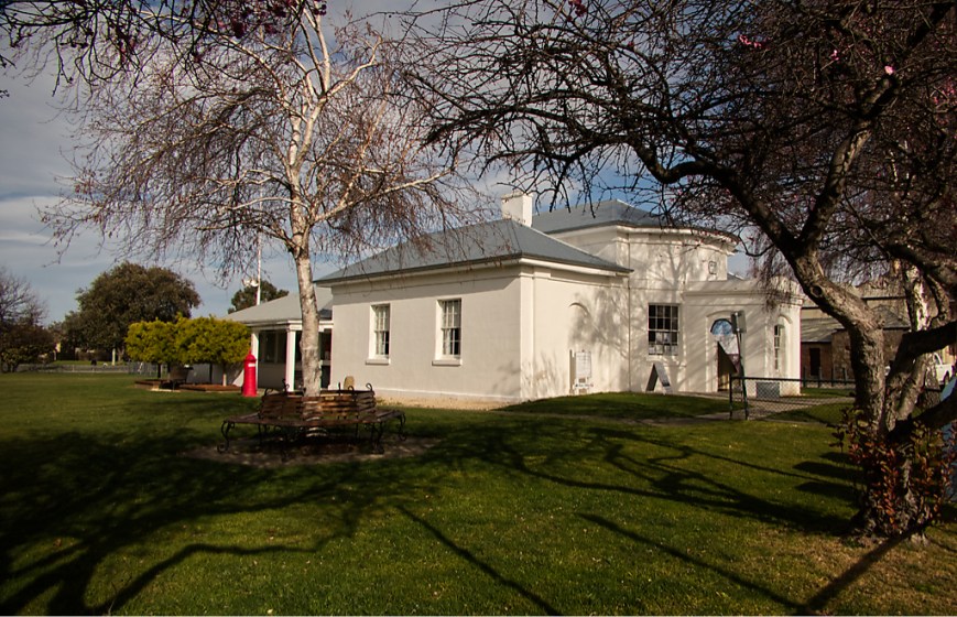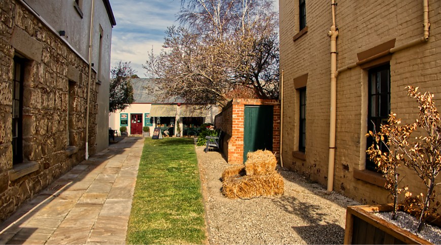 Behind the Bakery and its sitting area, really nice, kids can play etc.