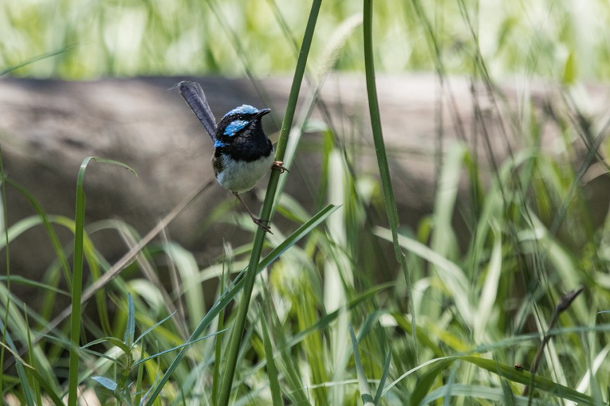 Little fairy wren tweeting all around me while have morning tea.