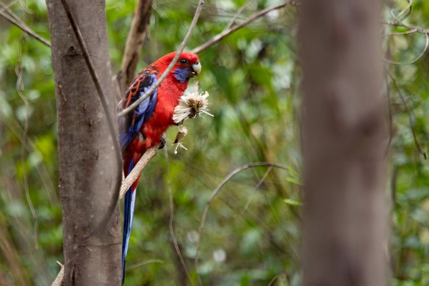 Crimson Rosella, I stalked it for ages to get close enough. Its eating thistle flowers.