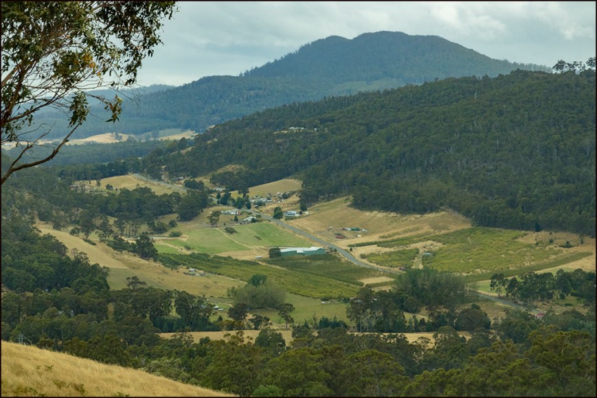 Camping at the sports ground at Geeveston. Bad weather is coming.  Myrtle Tree. Heading up to Hartz N.P.  This is worth the read.  From the lookout going up to Hartz Mountain.   Lichen.  Weather closing in. Hartz N.P. It has it’s own beauty.  Arve Waterfall, Hartz N.P.  Arve Waterfall, Hartz N.P.  Huon River, to the right is the Oyster beds.  Just a beautiful Gum tree.  Houn Port down there.  Looking down onto Geeveston from the big hill. You can see It was raining so had to move.   Beautiful Huon Valley.  Boat on the Huon River.