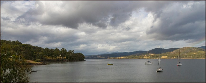 IMG_2907  Bridge over the Derwent River in Hobart.IMG_2908  The bridge in Hobart with Mt Wellington in back ground.IMG_2910  Mt Wellington.IMG_2914  Out of the traffic, now for some scenery.IMG_2920  This is where we had morning tea at Franklin on the edge of the Huon River.IMG_2928  A lot of old buildings are being used today for shops, galleries, etc, I loved the wheel in this photo.IMG_2931  Huon River.IMG_2932  As soon as I got over to the picnic table these ducks all came running, so funny.IMG_2937  Heading towards GeevestonIMG_2949  Free range chooks.IMG_2951  Nice entry to the town of Geeveston.IMG_2966  Had lunch at Dover.IMG_2972  Driving around to Southport, the end of the tar sealed road south.IMG_2982  Little beach holiday places right on the water.IMG_3001  End of the line. IMG_3017 IMG_3026  On our way back caught some good lighting on these yachts.IMG_3069 Another quick shot of the bridge at Hobart on our way home.