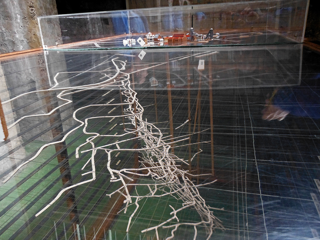 These white lines indicate the tunnels under ground, the deepest tunnel is 1.5 km down if I remember that correctly.