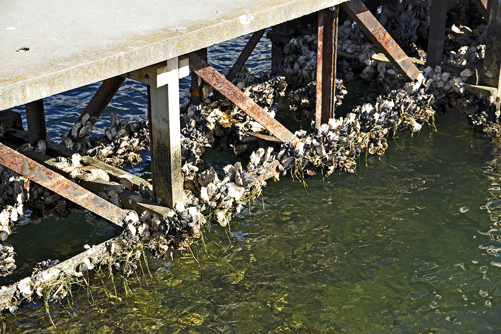 Looking from the wharf up towards the city.