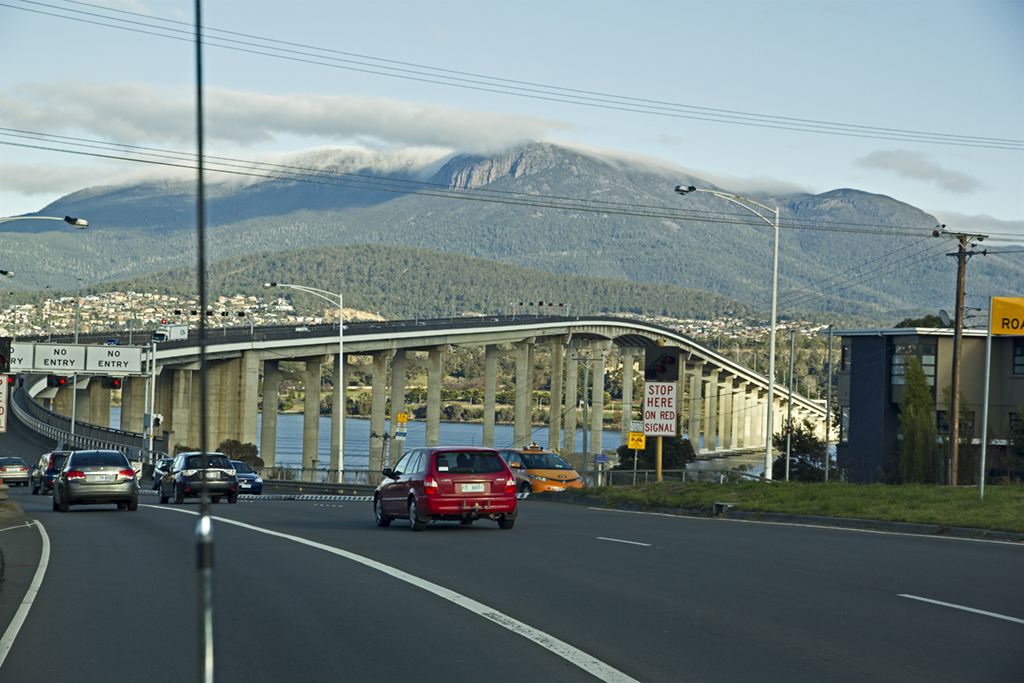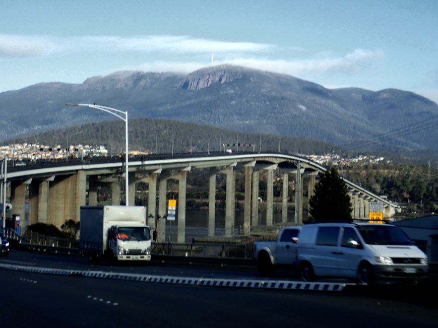 Another shot of the Tasman Bridge, Mt Wellington in the background. This does get snow.
