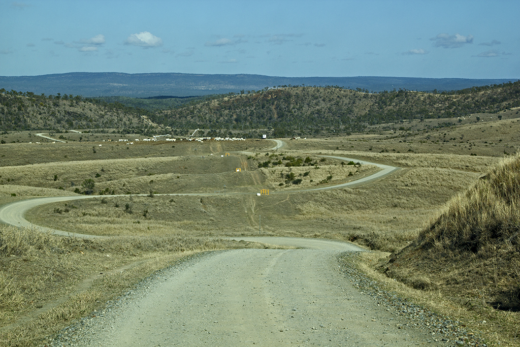 As we drive off there’s cattle on the road, they have the right of way. We are following that sign.