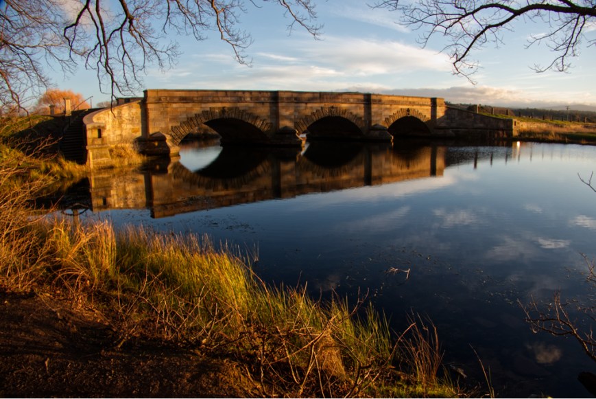 Ross Bridge was completed in 1836 and is the third oldest bridge in Australia and a finest sand stone one at that.  Plenty of room in the caravan park  Late evening as the sun was low in the sky