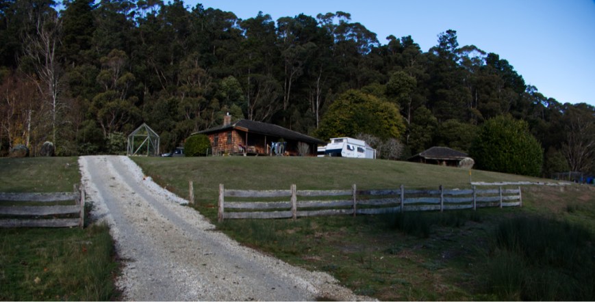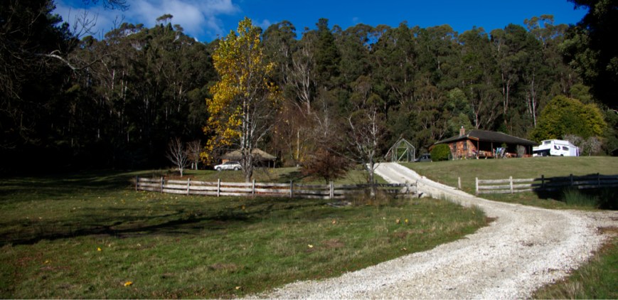 Frost on the ground early morning. Van Park Deloraine on the Mersey River.