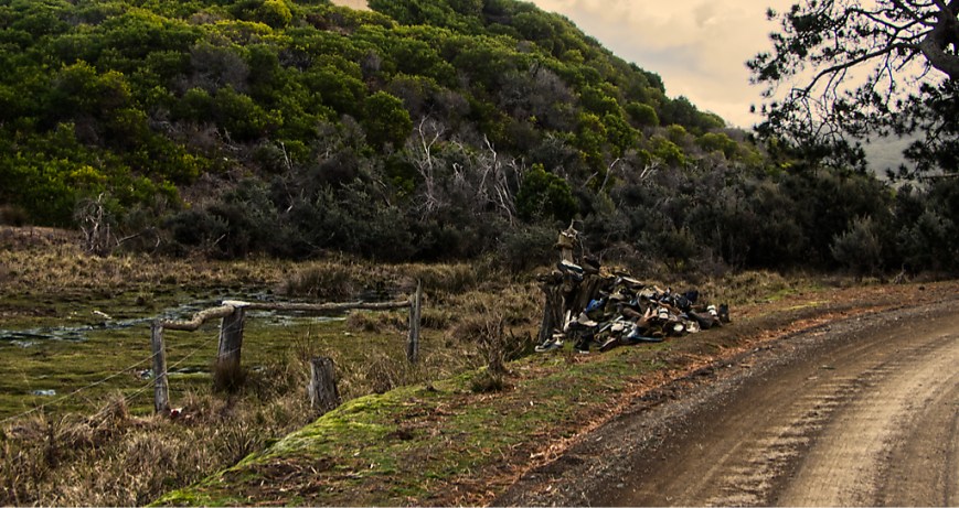 wondered what I was looking at when coming around the corner,a pile of odd shoes.